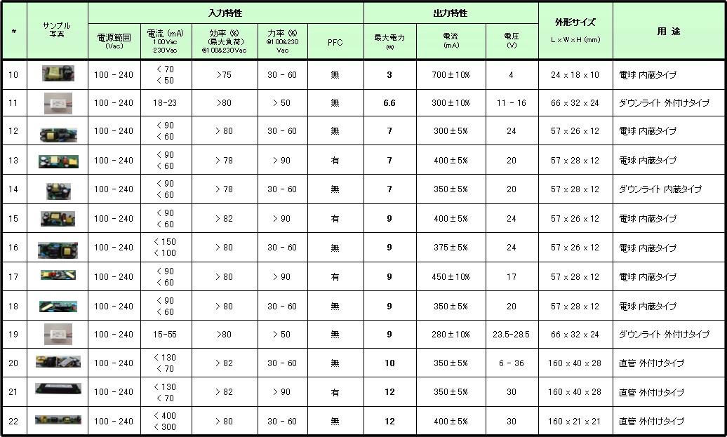 LED事業 - 電源製品ラインナップ